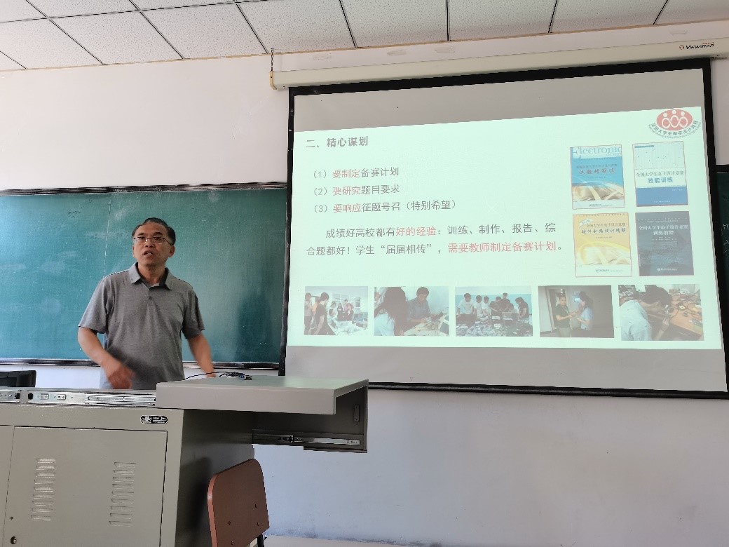院长韩顺杰,副院长董博及全校参加2021年全国大学生电子设计竞赛的教练、队员们聆听了此次报告会。