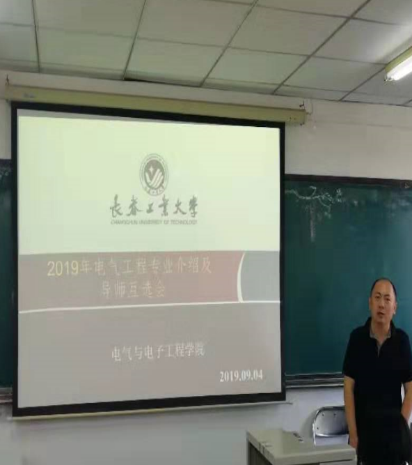 第二场会议,2019级电气工程专业介绍及导师互选会,电气工程系主任邵向鑫进行学科介绍,电气工程学科在1994年获“电力电子与电力传动”二级学科硕士学位授予权,几经发展在2010年获“电气工程”一级学科硕士学位授予权,介绍了电气工程的发展史,学科的师资力量,学科特有的实验室等。接着又围绕培养目标、研究方向、学制与学分、学位论文等相关话题进行了详细的介绍。在会议接近尾声时由各位导师依次进行专业方向的自我介绍,并且留下了自己的办公地址和联系方式,会上导师提出先了解再选择则的概念,鼓励学生先到实验室参观跟导师详细了解他的研究方向再根据自身发展需求再做选取。会议结束后,感兴趣的同学跟随导师进行交流达成互选。