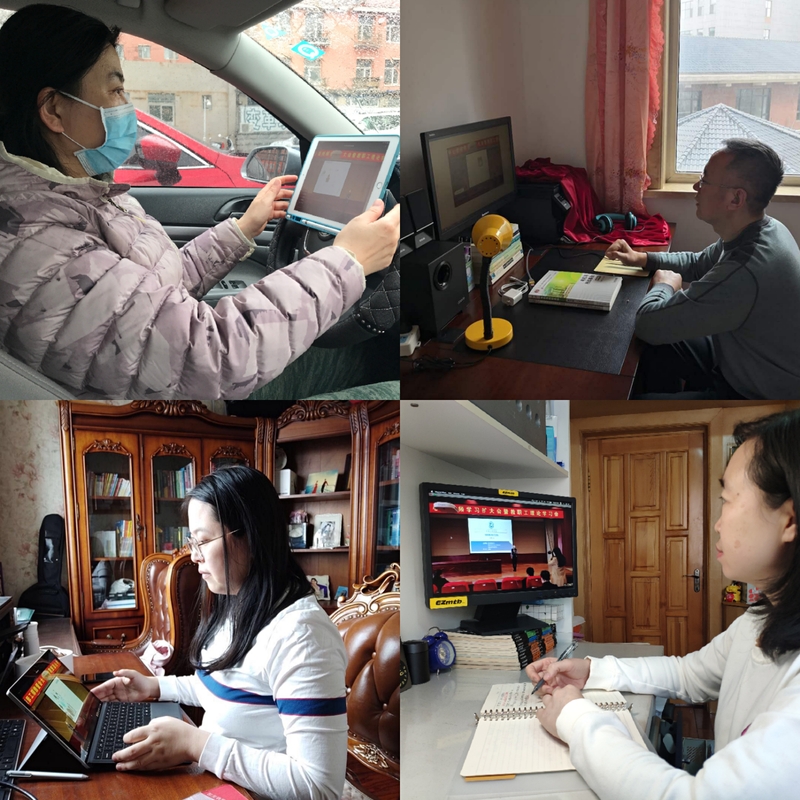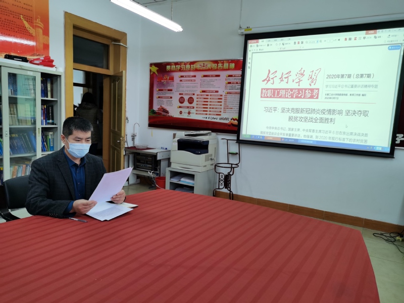 党委理论中心组成员在主楼1301会议室、全体教职工在办公室或家中通过“企业微信”观看“抗击疫情,我们在行动”专题报告。