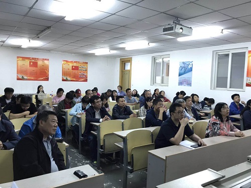全体教师党员参加,由党委书记王丽娜主讲。