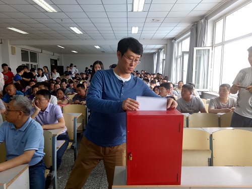 委员会增补委员选举大会,在大会上,矫东海向全体师生宣布了本次选举大会的有关精神、内容,强调了本次增补委员大会的重要性,并要求大家重视本次选举会,仔细、谨慎、公正地做出自己的选择。本着公平公正的原则,教工党员、学生党员纷纷投出了自己手中宝贵的一票。