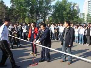 | 5月6日早6:30,我院“与奥运同行,为奥运喝彩”趣味体育比赛之“齐心协力”拔河比赛在我校南湖校区篮球场开赛。校学生工作处副处长尤海涛为比赛开哨。filmjav
