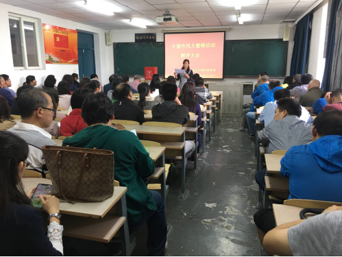 党委在电气楼1401室举行了干部作风大整顿活动测评大会,对我院科级以上干部进行了测评。测评大会由党委书记王丽娜主持,校督查组成员学校办公室副主任寇建新、学院领导班子成员及全体教师参加了测评大会。