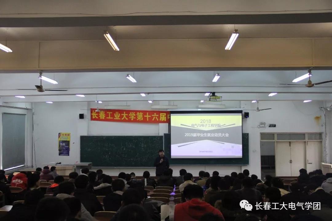 党委副书记矫东海和团委书记高博主讲,全体2019届应届毕业生参加了本次讲座。