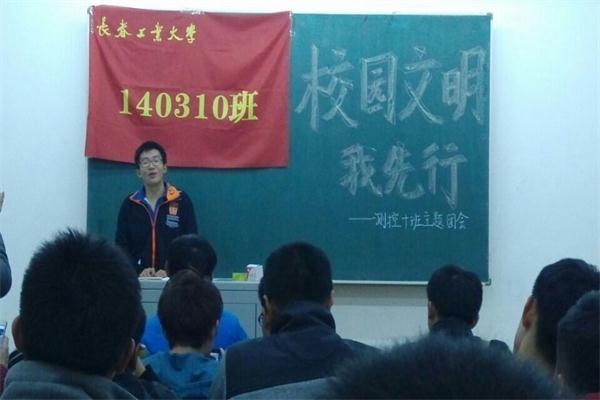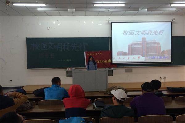 2014级各班在北湖校区开展了“校园文明我先行”为主题的团会活动。