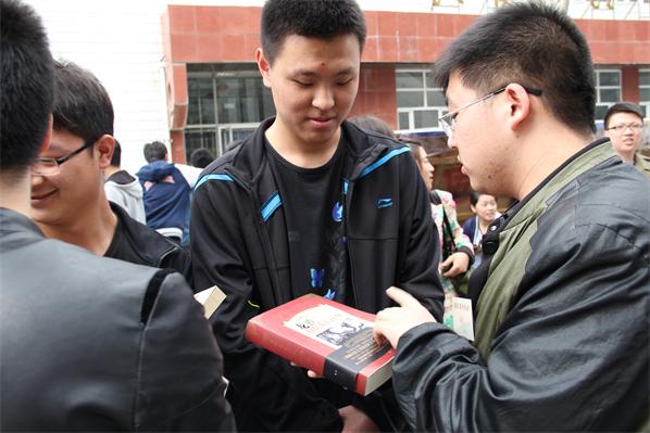 活动伊始,任书记和热爱读书的书友们进行面对面的交流。面对本次读书活动,任书记在肯定了活动的意义和影响后,鼓励同学们勤读书,读好书,积极同书友们互相交流,勇敢的表达自己的想法,通过交流读书心得,内化自己对书籍的感受。而后,上一届读书漂流中的优秀“漂友”,向本次读书漂流中的书友赠送“读书使者”的胸章。佩戴“读书使者”的胸章,不仅仅是读书爱好者身份的证明,更意味着有义务爱护参与漂流的2000本图书,还要将读书的热情传承下去。最后,参与活动的“读书使者”之间进行读书心得交流、并且互相推荐自己喜欢的图书。