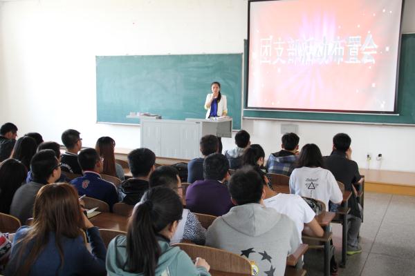 团委副书记夏天竺在北湖校区给大一各班团支部召开了团支部活动布置会。