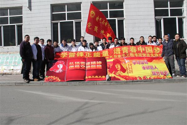 各团支部开展了“学雷锋,我们在行动”的主题团日活动,各班团支部向同学宣传雷锋精神,鼓励他们在日常生活中多做好事、实事,为需要帮助的人伸出援助之手,“自私对己,无私为人”,各班积极开展北湖公园义务清扫、关爱老人等形式多彩的活动以实际行动缅怀雷锋同志,弘扬雷锋精神。