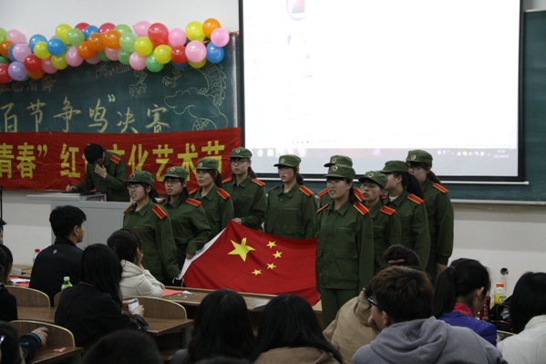在北湖校区西阶201教室举办了“朝阳青春”红色文化艺术节之“红色演绎”百节争鸣文艺展演活动。校学生会秘书长衣鑫、院学生会主席周子健、副主席邢岩、社团联合会副主席王梓源、秘书长董跃峰、舍委会主任庞文举、网络信息部部长王剑峰以及12级同学参加了此次活动。