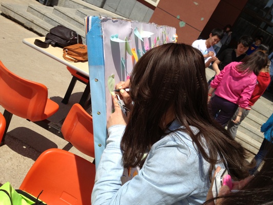 活动中,虽然天气很热,但是现场却非常热闹,很多同学主动的提起笔,纷纷表达了自己对母亲的爱,送上对母亲祝福。