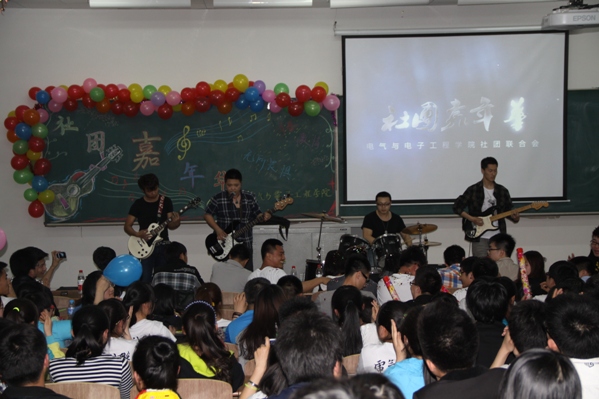 社联祝福的视频短片。社联副主席王梓源以及吉他社社长陈跃友等组成的摇滚乐队为本次嘉年华劲爆开场。铿锵的重金属音乐,激昂的律动狂吼,将场内激情瞬间引燃。而随后的龙拳双截棍,歌曲串烧,小品《新解压》,还有“谁是卧底”等游戏,以及号称“史上最残酷的游戏惩罚”更是将活动一步步推向高潮。场下观众持续的沸腾,欢呼声一浪接着一浪。晚8时许,本次嘉年华在华美的音乐中落下帷幕。