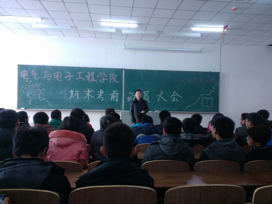 在北湖校区西阶204和301教室举办了2012级新生期末考前动员大会。学生党支部书记高博、单洪朱,辅导员助理高灿参加并做动员讲话。
