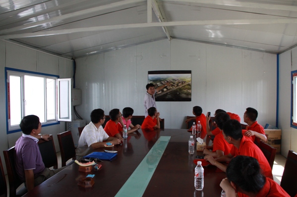 结束校区建设的参观与志愿服务后,在会议室赵总工程师从北湖的鸟瞰图对校区整体建设和功能定位进行耐心的讲解,同学们有了更进一步的了解,同学们也憧憬着美丽的校园,纷纷表达愿做校园建设成果宣传的使者。