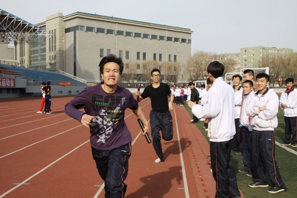 2011级14个班级参加本次比赛,每个代表队由四男两女组成。比赛中,各班参赛选手为了班级的荣誉竭尽全力的冲刺,男选手需要跑800米,常会出现体力不支的现象,但是几乎所有人都咬紧牙关,坚持到最后,就算拼尽最后一丝力气,也要将接力棒送到下一位队友的手中。女孩子更是巾帼不让须眉,全力冲刺,丝毫不逊色男将。比赛场上观众情绪高涨,呐喊声不断。最后,110312班赢得了比赛的冠军,110311班和110309班分别获得了亚军和季军。