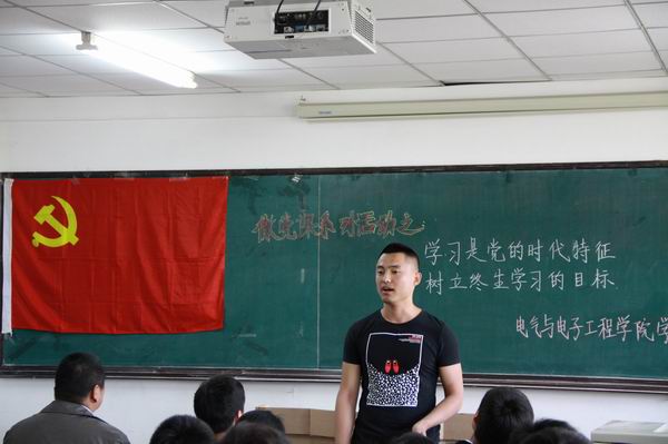 一句“学习是一切进步的先导,是求新求变的起点”拉开了活动序幕,本次党课由100301班党员尤洋,徐月阳等围绕“学习是党的时代特征,树立终身学习的目标”主题分别进行讲解,结合自身,探讨学习的重要性,并一致强调学习是党的时代特征,通过学习进一步提高自身政治素质和政治水平,提高自身科学文化素养的重要性。课中还强调,我们要树立终身学习的目标,应做到如下几点:树立自主学习的理念,树立全面学习的理念,树立创新学习的理念,在学习中进一步改造客观世界的同时改造主观世界,不断提高自我完善、自我超越的能力,始终保持党的先进性、纯洁性。最后,由郑老师对本次微党课进行总结,郑老师强调:世界是物质的,物质是运动的,学习也是一种运动,自建党以来,党的产生、成长、发展和全部实践,无不与科学认识、准确把握时代特征紧密相联、无不鲜明的反应时代特征,学习是党员共同的职责,每个党员都应树立终身学习,持续学习的目标。
