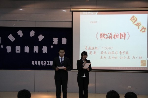 在南湖校区综合报告厅举办了首届“百节争鸣——节日的问候”活动。本次活动由院秘书处主办,此次活动得到了新浪微博的大力支持,首次启用了用微博送祝福的方式为参赛班级助威加油的形式。出席此次活动的嘉宾有院团委副书记于洋、学生会副主席刘鹤鸣、院舍委会主任王野、社团联合会副主席李亚林、学习部部长孙学家、网络信息部部长张玖龄、辩论协会会长叶佳美。