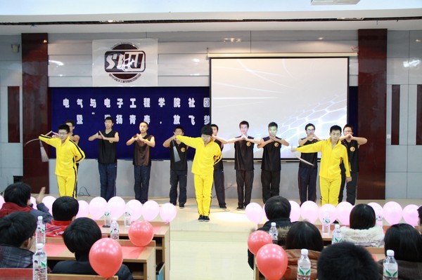 社团的发展状况,并对未来的发展方向作出展望。接着,矫东海老师为本次社团嘉年华揭幕,现场响起热烈的掌声。紧接着一系列精彩的节目不断的吸引着观众的眼球,武术协会精彩震撼的表演,带动起全场的气氛;大学生艺术团带来的单簧管独奏《北风》,让同学们陶醉在优美的音乐旋律中;电气之声合唱团的歌曲串烧,点燃了大家的激情;相声小品协会《我这大学》将正常晚会推向高潮,笑声和掌声接连不断。英语协会带来的《荆轲刺秦王》,让同学们在欣赏节目的同时,增强了对英语学习的兴趣;还有记者团的诗歌朗诵《四月的纪念》,曳步武社团的舞蹈《CRAZY》,魔方协会的魔术表演,辩论之星协会的《爆笑辩论会》,武术协会的《太极拳》给同学们带来了无限的欢乐和情趣。将近两个小时的晚会在爱心志愿者协会的手语节目《爱》中圆满落下帷幕。