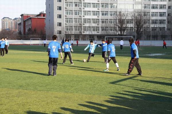 社团联合会足球协会组织,2011级各班组队报名参赛,经过13场淘汰赛,最终决赛在110304班和110305班之间展开。上半场,场上队员踢得较为保守,气氛显得较为沉闷,可能是大家更加看重比赛的最终结果,场下拉拉队员的加油声此起彼伏,比分定格为平局。下半场,球员们表现的更加积极,娴熟的配合和巧妙的传球,不时传来场下同学的惊叹声,110305班首先发力,率先在乱军中射进一球,最终比赛定格在1:0。110305班获得冠军,110304班获得亚军,110313班获得季军,110304班别墅以5个个人进球获得本次足球赛的最佳射手。
