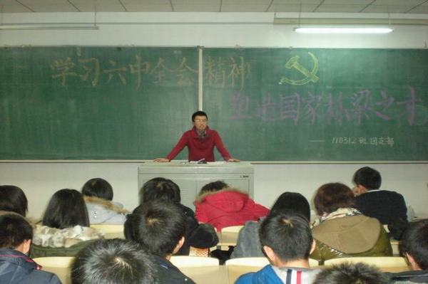 各班团支书按照活动要求,和同学们一起学习了《中共中央关于深化文化体制改革的决定》和《中共中央关于推动社会主义文化大发展大繁荣若干重大问题的决定》两个文件的主要精神。同学们根据所学的文件精神纷纷发表自己的看法和意见,有的同学表示要以学习贯彻党的十七届六中全会精神为动力,认真学习、勇于实践;有的同学表示要紧紧抓住建设文化强国的机会,从自己做起、从身边的小事做起,让文明之花在校园绽放;有的同学表示要树立正确的人生观、世界观和价值观,充分展现当代青年学子的风采,切实肩负起建设文化强国的青春使命。