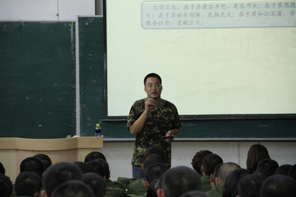 首先赵老师总结了近几日同学们的军训情况,针对他们的表现做了点评并提出了自己的要求和建议。使同学们了解到自己在大学日常生活中该做什么不该做什么。随后,赵老师结合自己的工作经验向同学们讲述了大学之灵魂;大学里的四大组成大师、大楼、大气和大学生,从不同方面运用各种事例和比喻来引导学生找到属于他们自己的大学。从培养目标、培养模式、学习方式、教学方式、学习内容、学习状态、学习境界、生活方式、发展道路八个方面着重强调了大学与中学的不同,让同学们树立一个积极向上的目标,在大学四年里认真学习,学习知识,学会做事,学会做人。使自己人生价值得以体现。