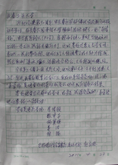 发来表扬信,赞扬同学们有吃苦耐劳、甘于奉献、乐于助人的高尚品格。