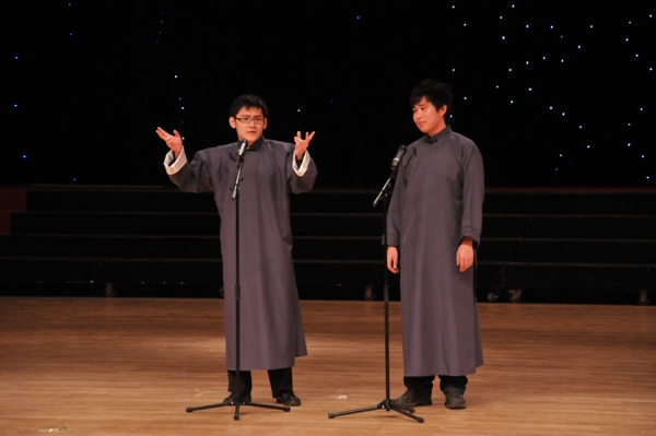 师生互敬互爱、团结一心的精神风貌。诙谐幽默的小品《大学进行曲》、相声《大学恋歌》等精彩的语言类节目生动再现了鲜活、浪漫而又富有激情的大学生活,引发观众的阵阵掌声。动感十足的现代舞《U》以及高亢激昂的一曲《离歌》更是将晚会引向一个又一个高潮。由filmjav