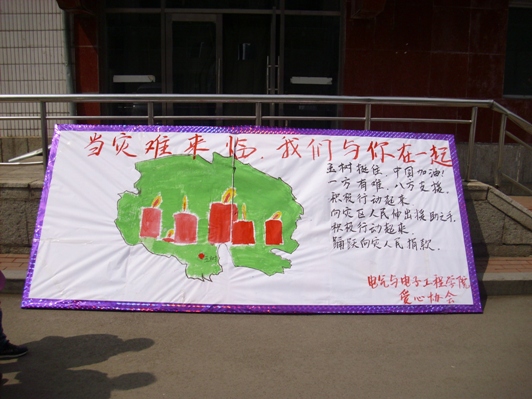 爱心社配合学校团委在食堂前组织了赈灾募捐活动,各班团支部也积极行动起来,截至24日,全院51个团支部的2000名同学为灾区捐款总计18238.70元。这些在危难时刻展现出的善行和忧国忧民的情怀充分体现了电气师生同舟共济、携手同行的文化内涵和品德风尚。