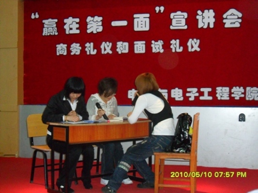 赢在第一面 ——我院举行商务礼仪和面试礼仪宣讲会 2010年5月10日晚7点整,我院在我校南湖校区综合报告厅举办了题为“赢在第一面”——商务礼仪和面试礼仪宣讲会。讲座由filmjav