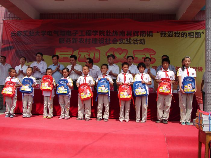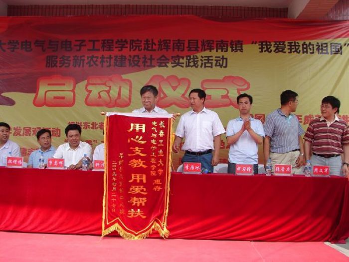 党委书记张学忠、副书记周文军,辉南县委办公室主任、宣传部长、教育局长、团委书记等出席了启动仪式。启动仪式结束后,双方领导参观了希望小学和大学生社会实践现场。  此次社会实践活动历时5天。大学生志愿者在希望小学举办了数学、语文、英语特色辅导班,大学生与小学生学习、成才交流会,开设了电脑展示课、播放了历史影片,举行了建国60周年成就图片展,开展了社会主义新农村政策宣传,为当地老乡免费检测和维修家电。志愿者还走访了困难小学生家庭,参观了当地特色企业,深入农田体验劳动生活,到当地村委会开展挂职锻炼体验活动。 此次社会实践活动得到了吉林教育电视台和辉南县电视台的采访报道。 |