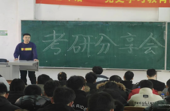 本网讯(通讯员 王亮)时光荏苒,光阴似箭,经过三年的大学生活,想通过考研提升自己、改变自己的同学越来越多。为帮助这些同学合理规划时间,做好学习计划,我院于3月17日下午3:30在综合楼2楼召开“考研经验交流会”。本次大会邀请了孟令航学长为同学们介绍考研相关信息。