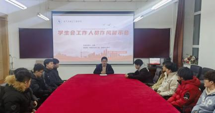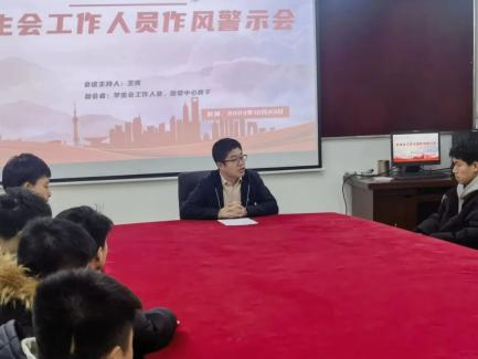 团委副书记王亮组织开展院级学生组织工作人员作风警示教育会。此次会议的目的是要提醒学生骨干以及学生会工作人员在作风、纪律、工作规范、行为要求等方面严格要求自己,以端正的态度投入到团学组织工作中。
