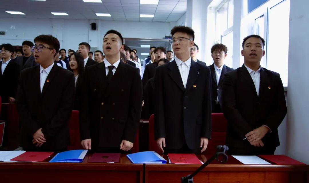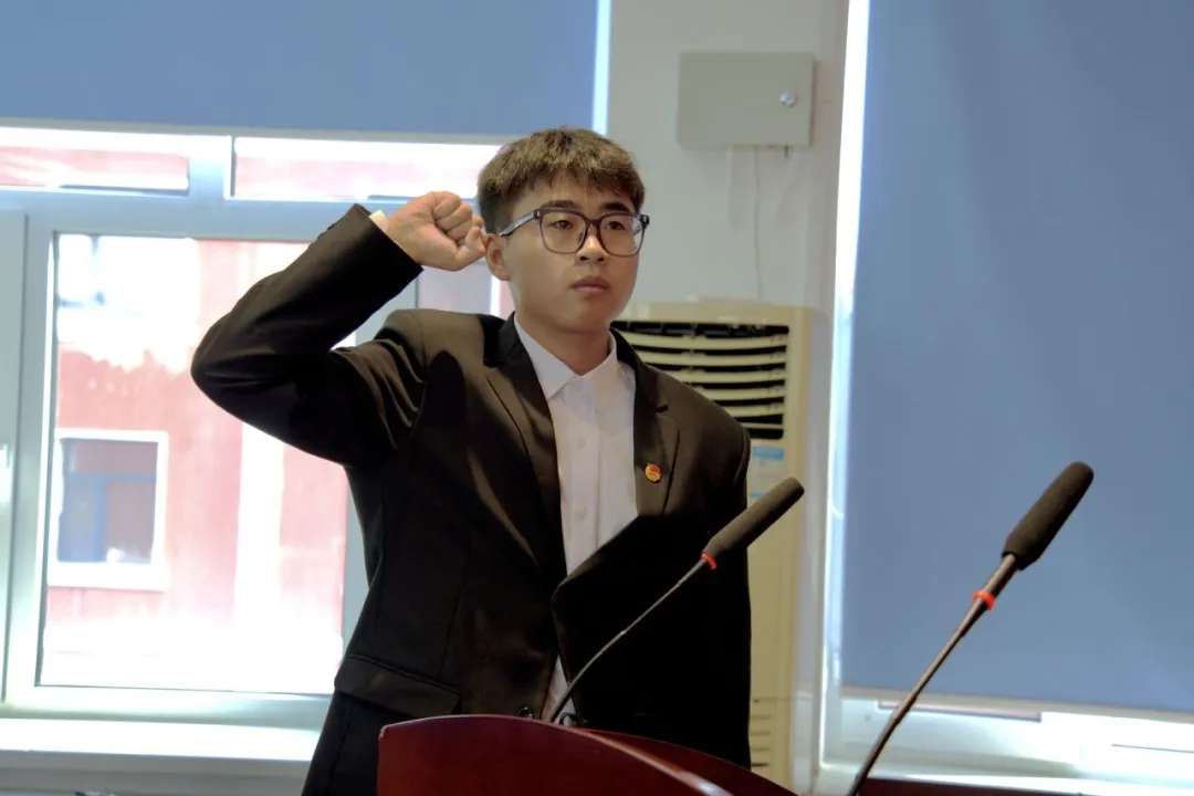 大会第六项:第二十三届学生会轮值主席蒋诚俊带领全体团学骨干宣誓