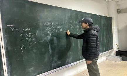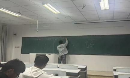 讲台上的学生自信满满,声音清脆。手中的笔在黑板上流畅滑动,思路清晰地讲解难题。他眼神专注,仿佛散发着智慧的光芒,同学们也听得格外认真,沉浸在知识的海洋中。