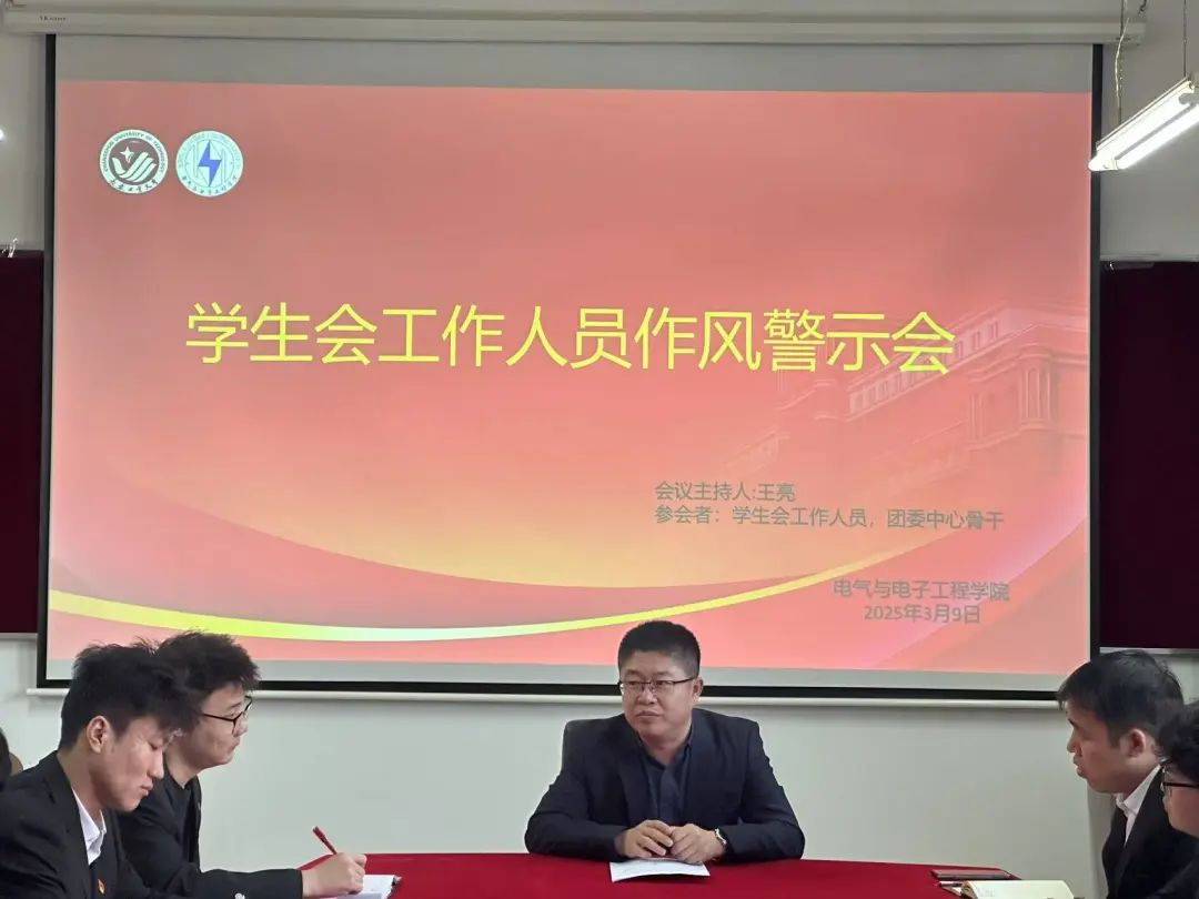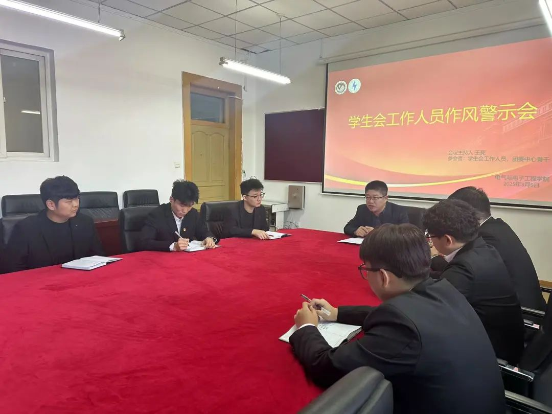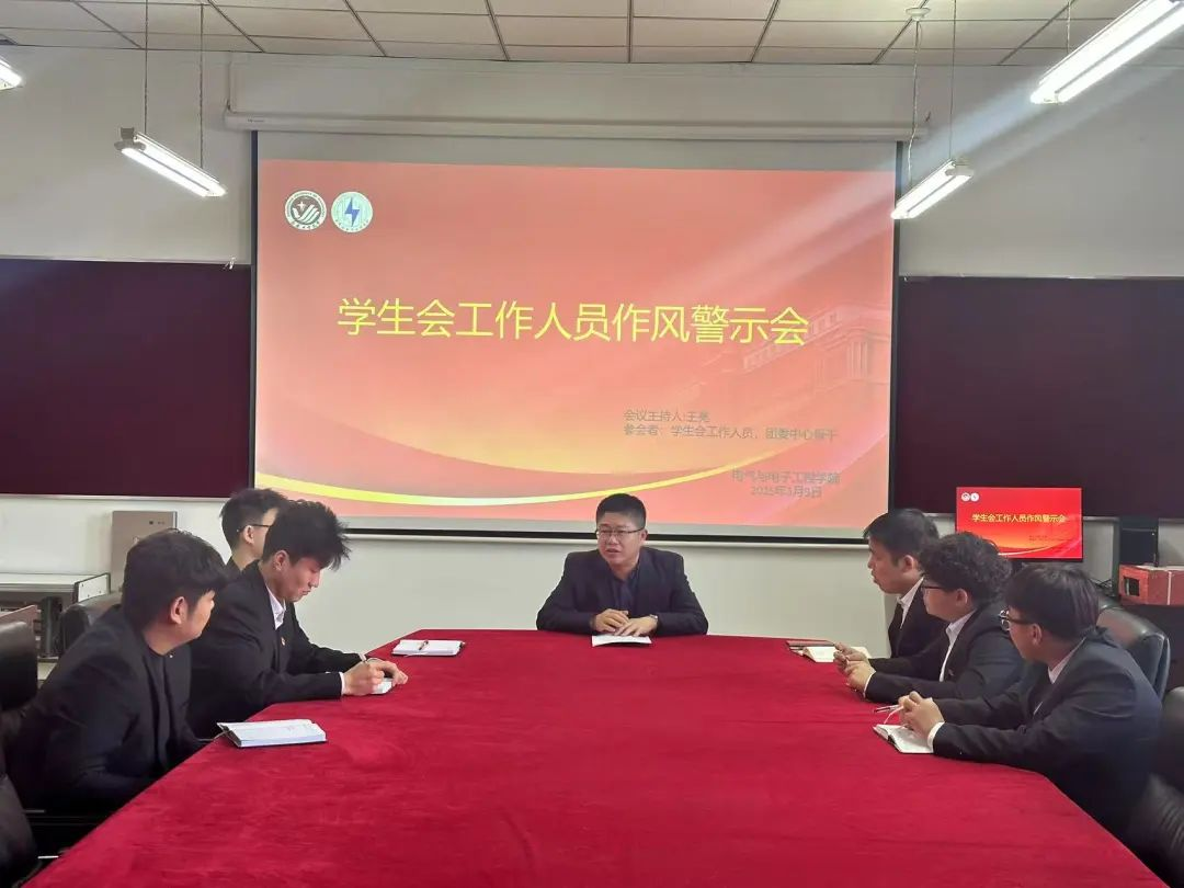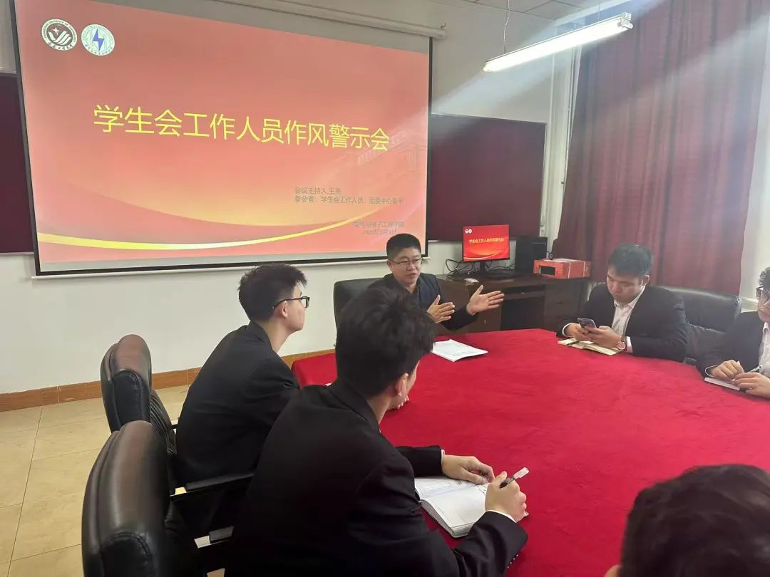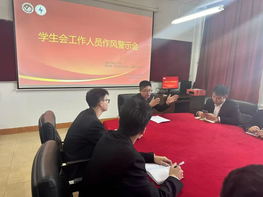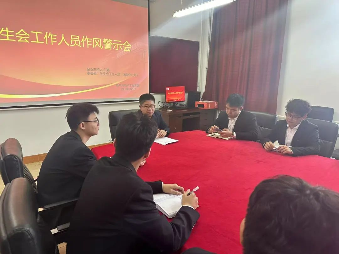 学生会召开作风警示会。本次会议旨在增强学生会成员的服务意识、责任意识,纠正不良作风倾向,确保学生会工作始终围绕同学需求展开。