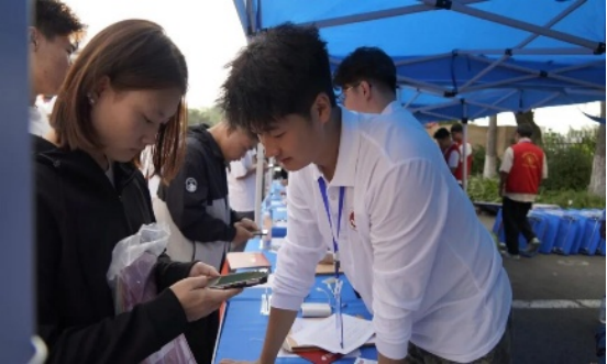 在新生报到处,一群身着统一志愿服装的学长志愿者们格外忙碌,他们主动上前接过新生手中的行李箱、包裹等行李,一路护送新生至宿舍楼下,用热情与行动为初入校园的新生们送上第一份温暖。