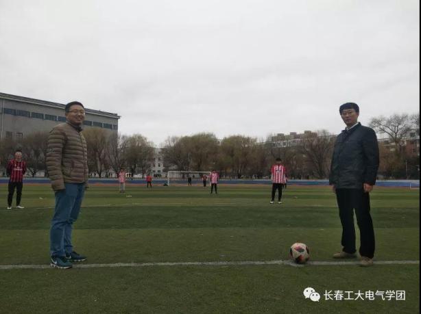 “电气杯”足球赛决赛。此次比赛的主裁判是学生会副主席马金赫,边裁判为田径队队长钱力。出席观赛的嘉宾有团委书记高博和17级辅导员老师朱博。