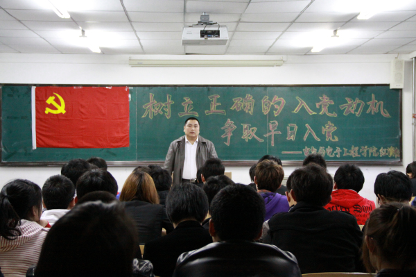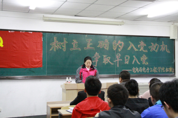 蒲老师就如何入党进行了深入的讲解,要想入党首先要树立正确的入党动机,当有了正确的入党动机后还需要正确的书写入党申请书,然后要经常的递交思想汇报,作为一个即将入党及已经入党的青年大学生,应该能够经得起党和人民的考验,应该树立正确的人生观价值观,要深刻学习马列主义毛泽东思想邓小平理论,并将理论化为行动,主动投入到社会实践当中,并且努力把较高思想注入社会实践。她强调:要在改造主观世界改造客观世界的同时,要有批评与自我批评的自觉性,自觉产生理论上的修养,不怕犯错误就怕犯了错不改正。主动接受党的培养和教育,接受党的考察,在考察中不断增强入党的决心,坚定不移地跟党走,听党指挥。