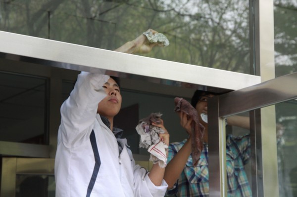 随后,同学们拿着抹布、扫把等工具展开了一场热火朝天的义务劳动。一队同学去打水,一队同学拿着扫帚去扫灰,剩下的同学则拿抹布去擦墙围子和玻璃,没有工具的同学甚至用手清理杂物。见到他们这样肯干的场面,后勤清扫员对此次参加劳动的同学们致以真诚的谢意,并赞扬了同学们的奉献精神。从此路过的老师和同学都竖起了大拇指,这是对他们义务劳动的爱心与责任给予肯定。在劳动过程中,每一位党员同学都发扬不怕苦、不怕累,全心全意为全校师生服务的精神,将各区域打扫得干干净净,焕然一新。  党员先锋队的成员们,用行动体现了为迎接校庆所贡献的力量。此次义务劳动让同学们通过实践深刻地体会到雷锋精神的真谛,增强了同学们的劳动意识,发扬了党员吃苦在前、乐于奉献的精神,对filmjav