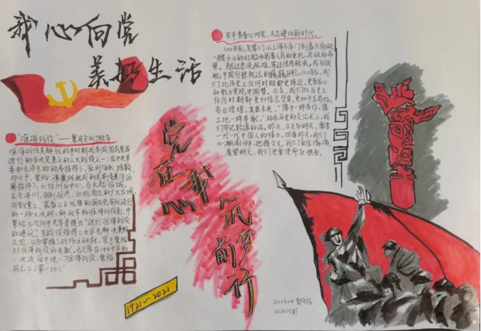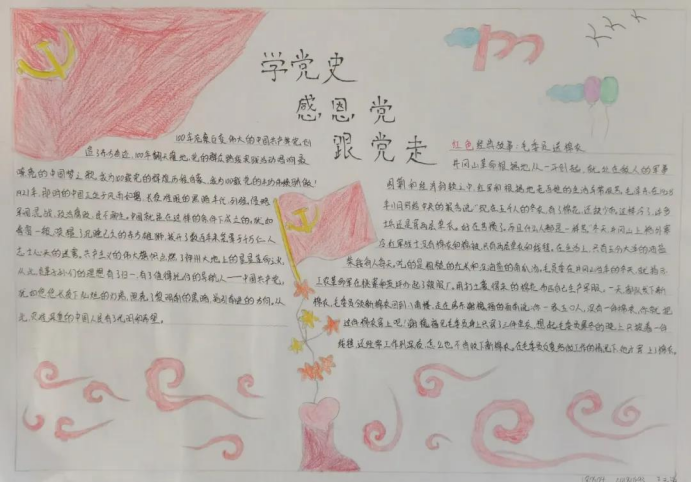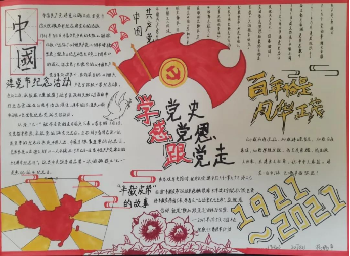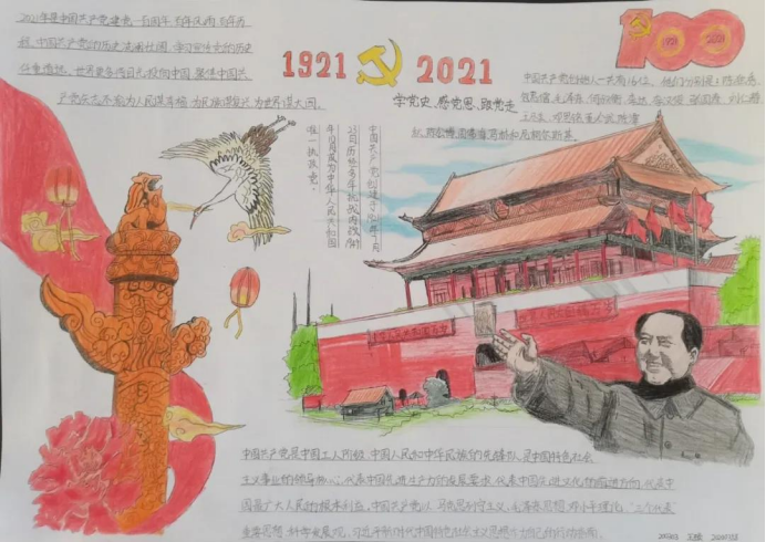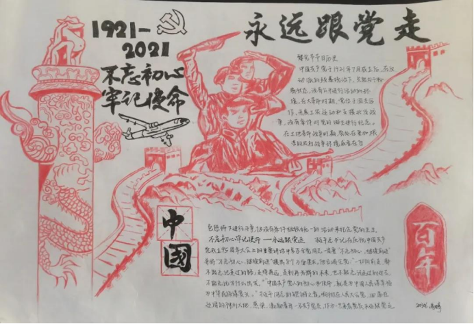 书中显血骨,画里呈江山。书法能锻炼品性,绘画能提高境界,而且书法和绘画作为我们民族的瑰宝,是我们一代代中国人的精神食粮,同时也是我们在世界文化园林中的骄傲。此次手抄报大赛将书法和绘画结合在一起,通过竞赛的方式继承发扬中华优秀传统文化、增强文化自信,展现了同学们认真的党史学习态度,为大家树立了优秀的榜样,展现出我院学子的优良风貌。