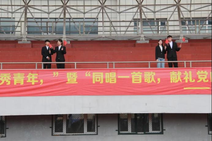 最后,为表达对党百年华诞的由衷祝福,我院全体师生在杜天阳、李涵宇、吕明泽、郭名佳四名同学的领唱下同唱《没有共产党就没有新中国》。