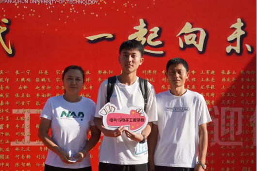 所有学生名字的欢迎墙合影,一家人一起拍照,留下珍贵的回忆。