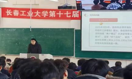 团委书记王亮开讲。同学们在王老师的讲解下,深入学习习近平总书记听取吉林省委和省政府工作报告时的重要讲话精神。本堂课围绕创新产业、深化改革、粮食安全、民族团结、党建引领等要点展开,激励同学们牢记使命,为东北振兴与国家发展贡献力量。