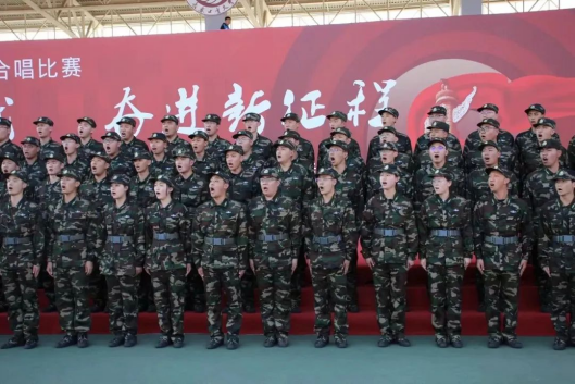在北湖校区举办“唱响新时代,奋进新征程”2023级新生军训大合唱比赛。