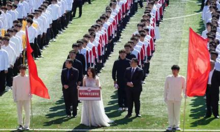 在这激情四溢的运动会现场,领导们的莅临宛如一道闪耀的光芒,照亮了整个观众席。他们的到来,赋予了这场运动会更深远的意义,让每一位参与者都备受鼓舞。现场观众们用雷鸣般的掌声和活力四射的舞蹈,热烈欢迎领导们的到来,这一刻,整个运动场都沉浸在振奋与喜悦之中。领导们看着青春洋溢的学生们,为之骄傲自豪。