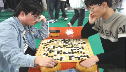 时代千帆的争逐似恰似黑白对弈间的进退,时代浪潮的翻腾恰似棋局方寸里的纵横。在比赛过程中,全场充斥着紧张而激烈的氛围。棋盘上黑白双方的子,时而形成草隆芜杂的格局,时而又显得空旷单薄,具有强烈的变幻和博弈性。此时的棋手表情严肃,目光凝重,手不停地在棋局上推敲着每一步棋的后果。他们的思维在迅速运转,不断地推演着胜利的可能性。目睹这样的一幕,即使不懂棋也能感受到其激烈程度。一步步地,棋子在棋盘上下着,形成了错落有致、错综复杂的局面。