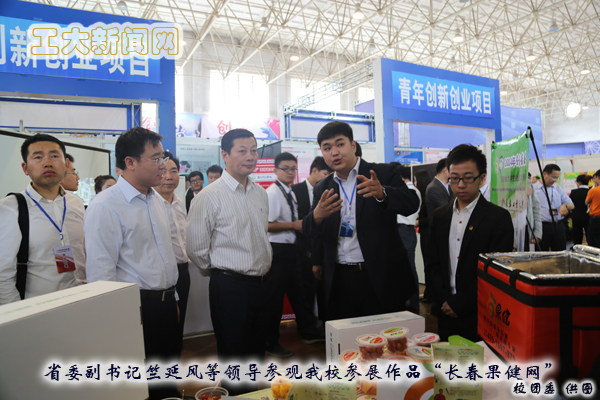 本届“创青春”大学生创业大赛中,我校有六件作品进入终审答辩。最终,我校选送的《GPRS个人定位追踪智能拐杖伞》获得金奖,《基于物联网-云计算的康馨医疗健康管理体系》、《转炉喷溅计量预报分析仪》【电气】、《长春果健商贸有限公司》3项作品获得银奖,《健“糠”之源系列产品》【电气】、《上下肢康复训练装置》2项作品获得铜奖。终审答辩会后,吉林省大学生科技创新项目“创投广场”推介会在长春理工大学体育馆举行。竺延风饶有兴致的参观了创投广场我校参展项目,并与我校学生进行了深入交流。