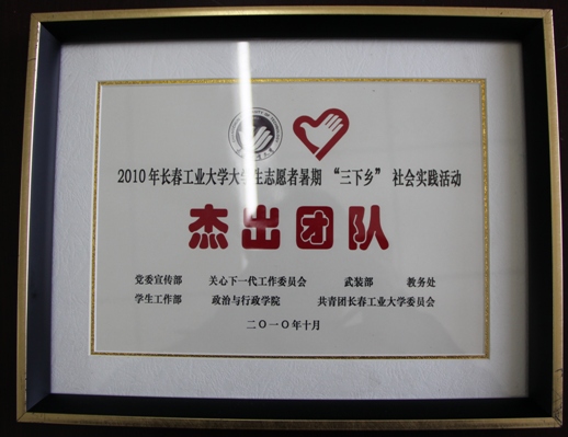 今年暑期,学校组织开展了以“服务三农发展、共建美好家园”为主题的“三下乡”社会实践活动,filmjav 党委高度重视,filmjav 团委集中组织了1个社会实践服务营,1支国家级重点实践服务团队。20余之校级社会实践小分队。按照学校社会实践工作安排,经过filmjav 组织申报,校团委审核,最终我院获得优秀社会实践活动服务营,filmjav 赴梅河口市湾龙乡科技兴农实践服务小分队获得社会实践活动杰出团队,赴长岭县北正镇中心校支教实践小分队,林志琦、周文军、矫东海、郑洪斌、赵爽获社会实践活动优秀指导教师,徐婷、杨奥棋、赵健颖、李佳俊、解志强、王艺儒、冯衍赫、苏大伟、李怀宇、曹冬月获得社会实践活动优秀学生个人。