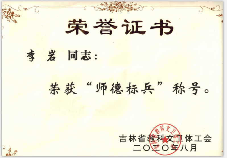党委多方位、多层次强化教职工思想政治教育,深化师德师风建设,坚定理想信念,弘扬和践行社会主义核心价值观,引导和激励教职员工树立“不忘初心、牢记使命”的责任意识和宏扬高尚的职业道德风尚,取得了丰硕成果。李岩老师在全省教科文卫体系统开展了“扬正气、树行风,争做职业道德标兵”活动中荣获“师德标兵”荣誉称号。