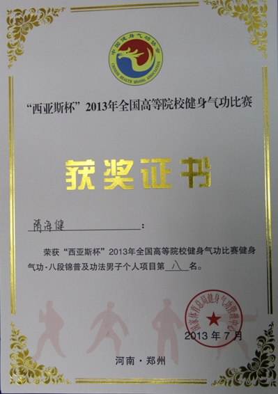 我院学生在“西亚斯杯”2013年全国高等院校健身气功比赛中获得佳绩<