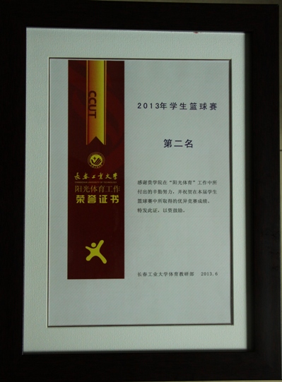 由李大鹏、金鑫、于尚坤、宋崇、刘凯、袁野、杨文斌、李鑫磊、刘思远、曾庆阳、冯国满、郝帅组成的我院篮球队,在校篮球联赛中顽强拼搏,取得联赛亚军好成绩。